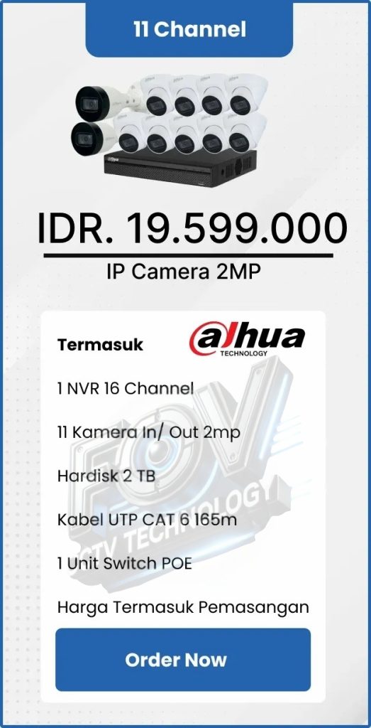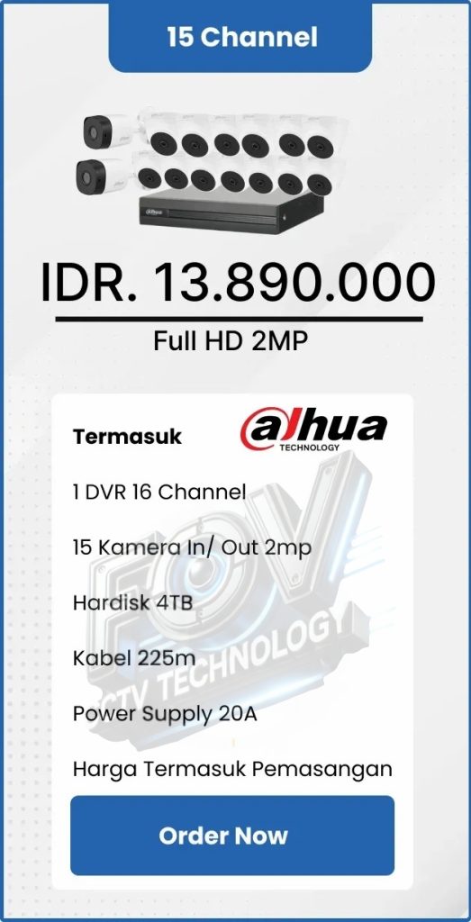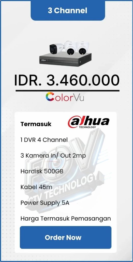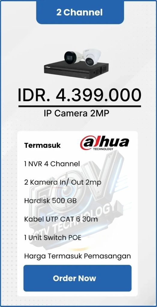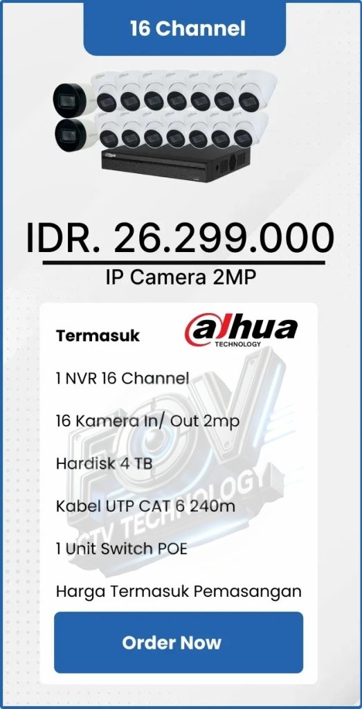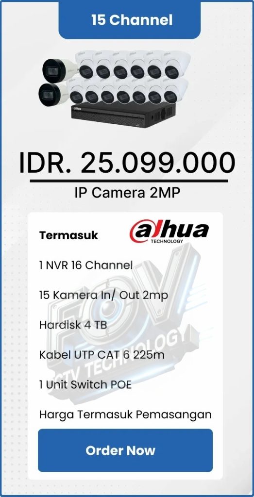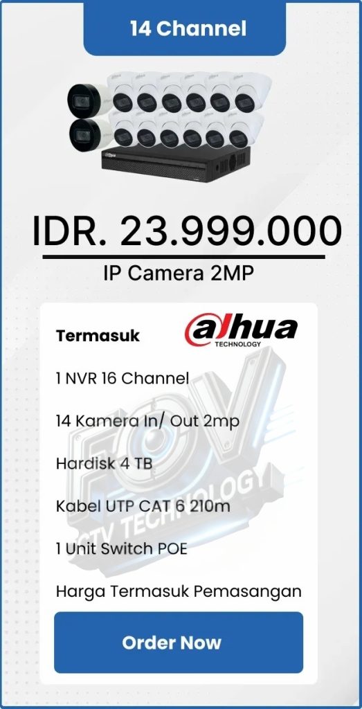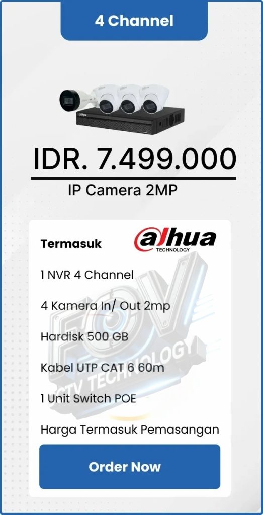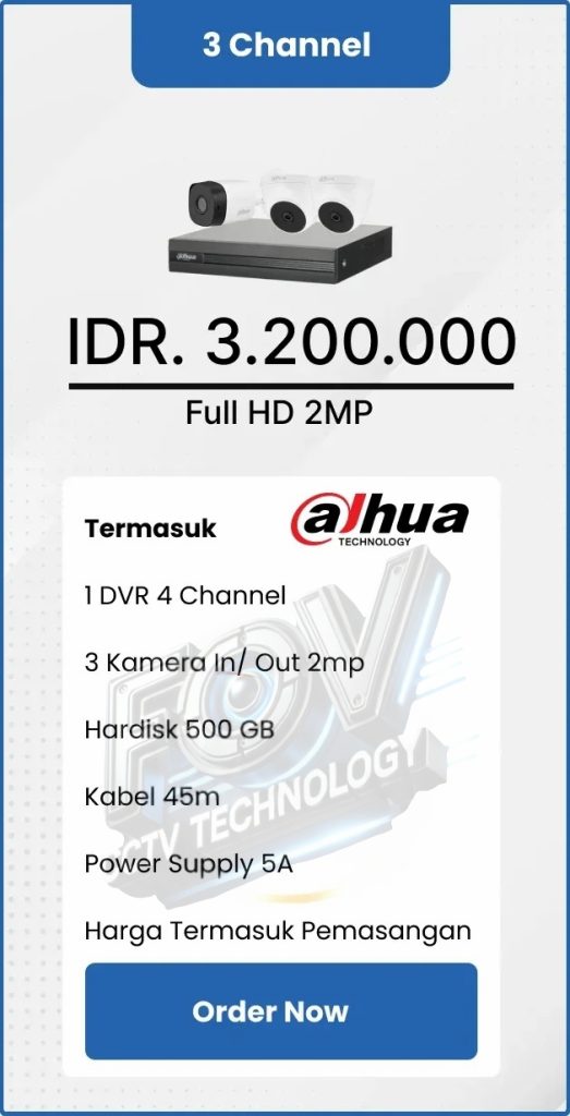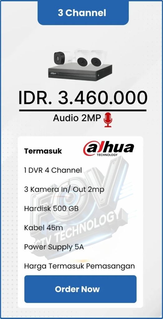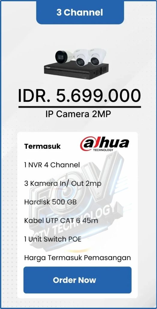3. Garansi DVR/NVR dan kamera 2 tahun, harddisk 1 tahun serta garansi instalasi 1 bulan.