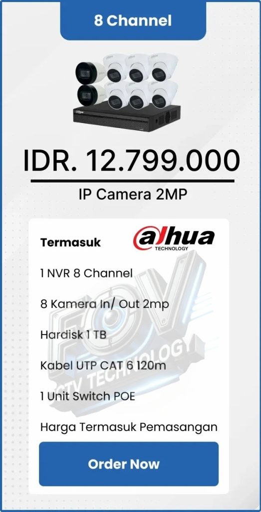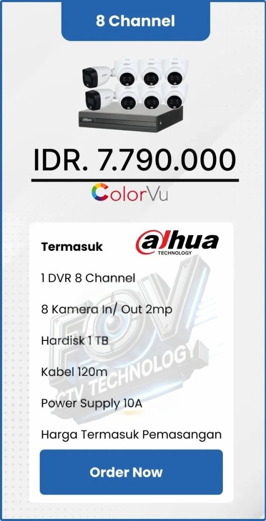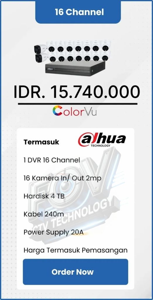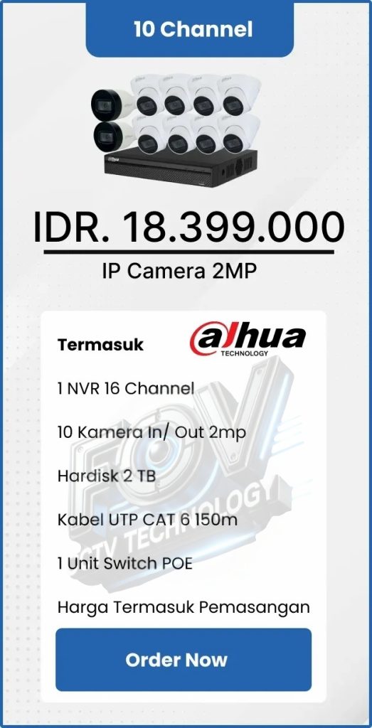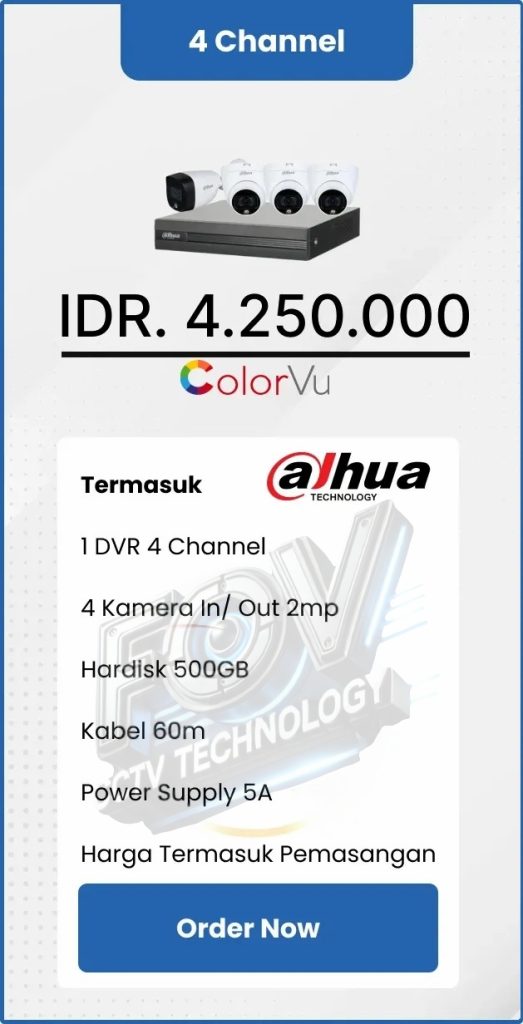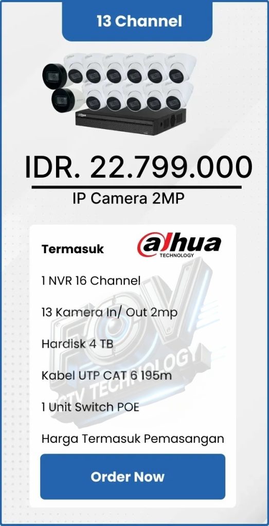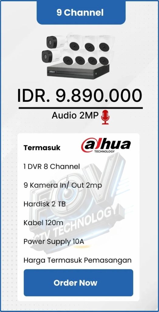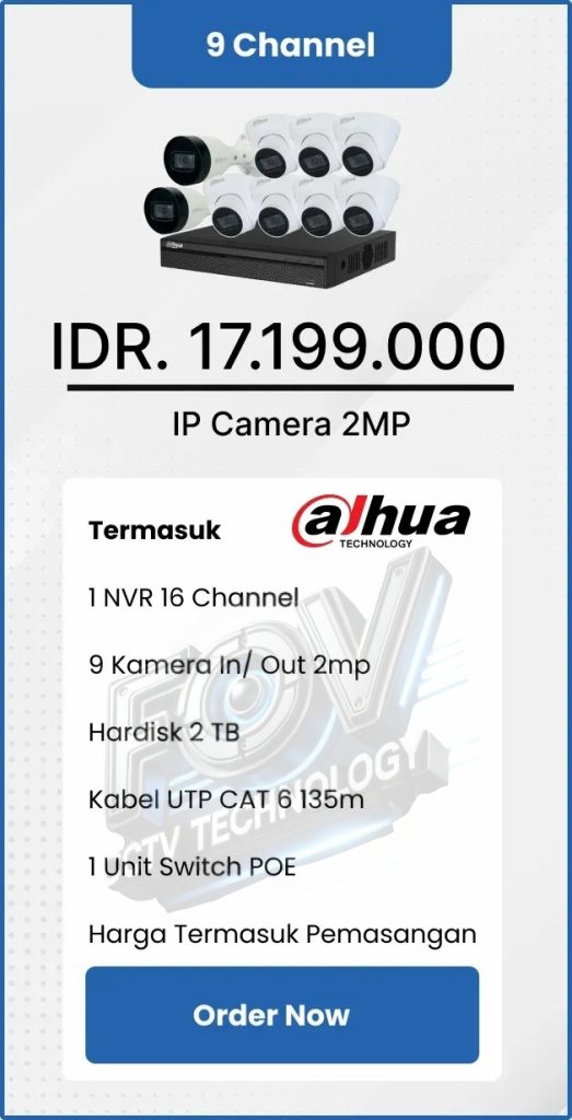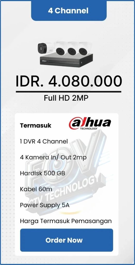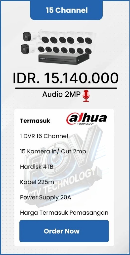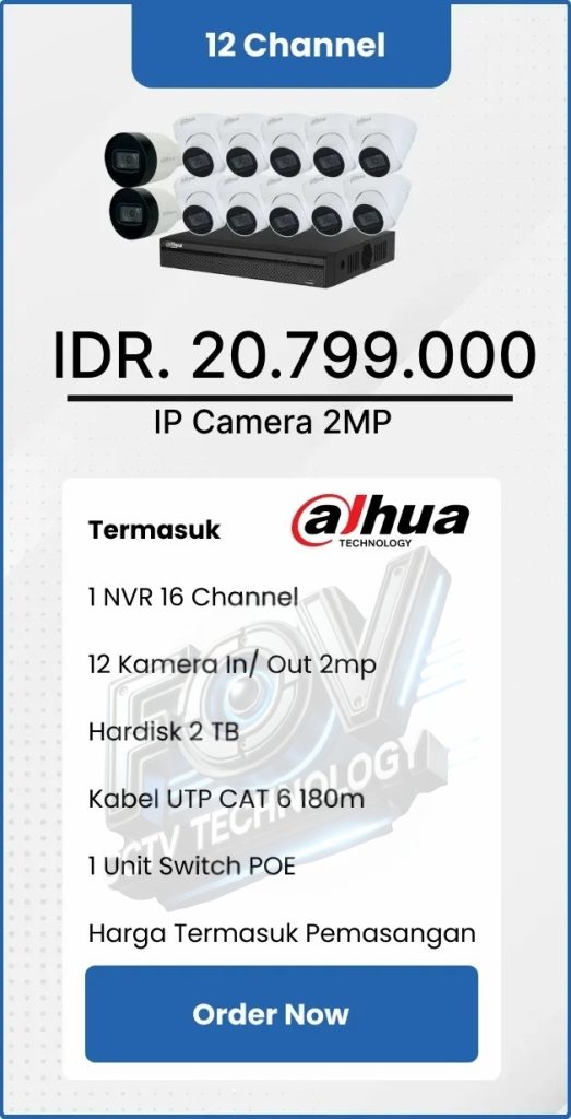 3. Garansi DVR/NVR dan kamera 2 tahun, harddisk 1 tahun serta garansi instalasi 1 bulan.